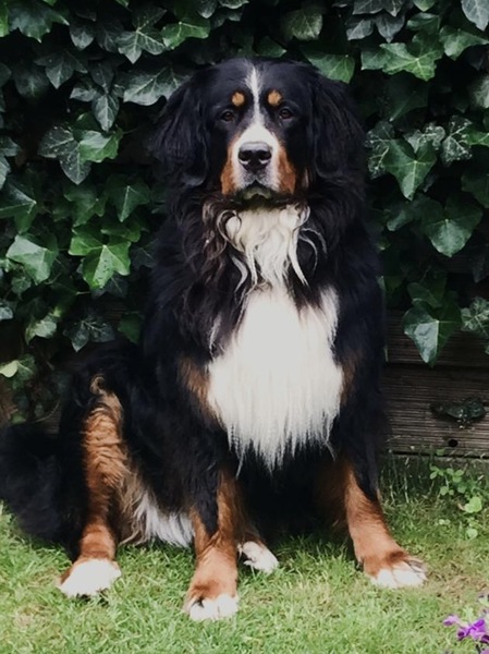 links: Bella hat sich zu einer wunderschönen lieben Berner-Dame entwickelt. rechts: Bella mit ihrem Kumpel Basti - Sie kann auch Zähne zeigen