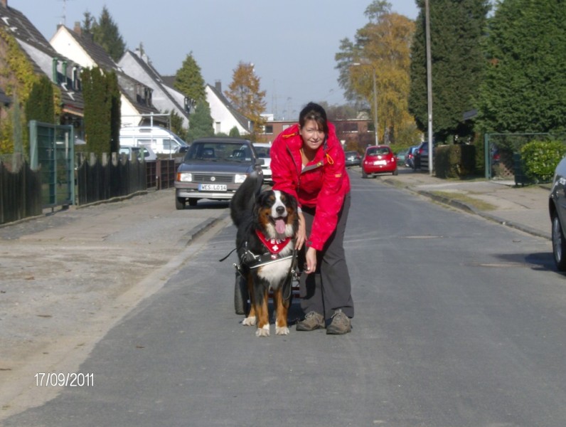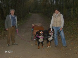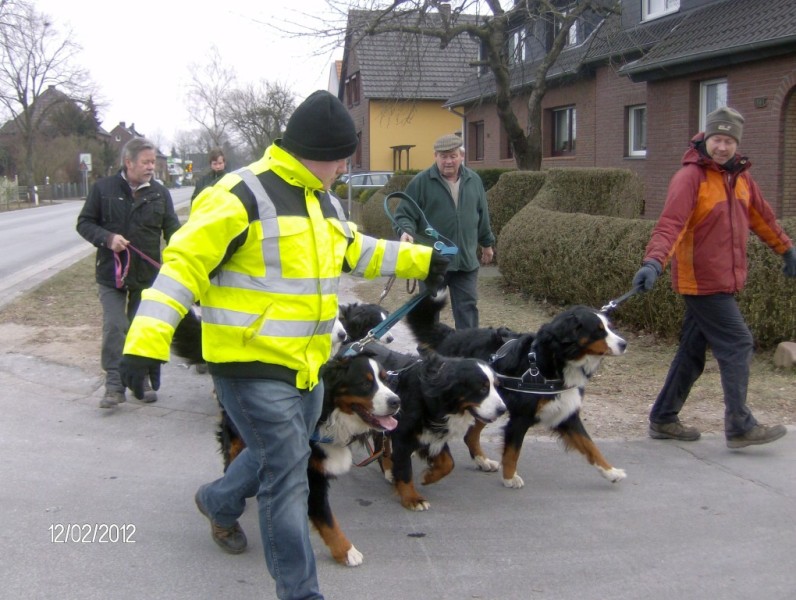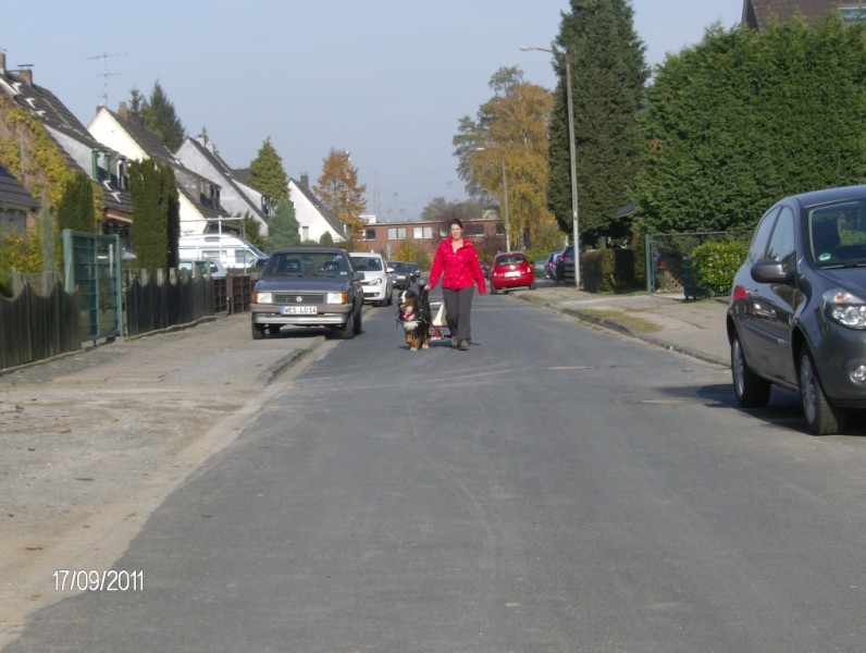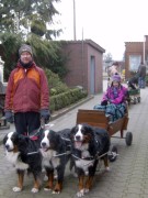 Bero wurde mit Mama Ambra und Bruder Bentley eingespannt. Alle drei sind Neulinge auf diesem Gebiet. Es hat super geklappt und den Hunden hat es Spaß gemacht.