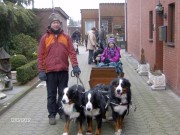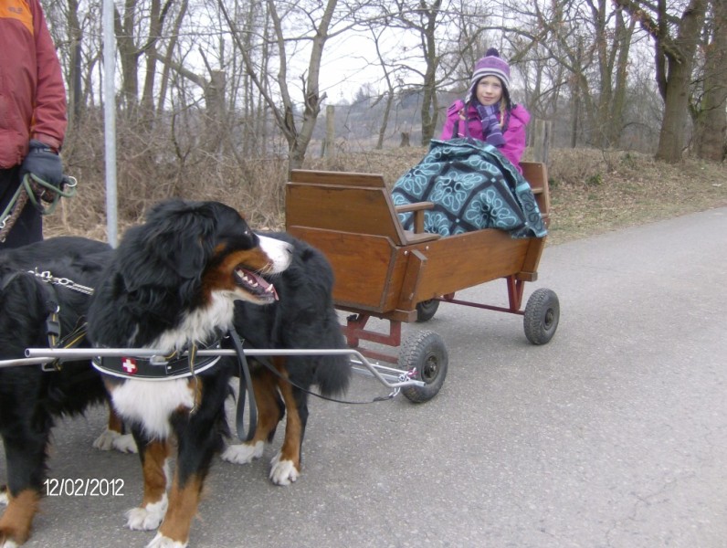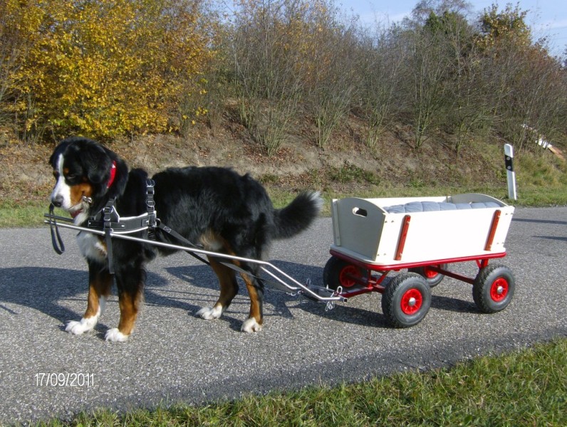 Die Berner Sennenhunde wurden in vielen Teilen Europas, Deutschland, Belgien und der Schweiz, von Bauern und Handwerkern zum transportieren ihrer Erzeugnisse mit Hilfe von Karren oder Wagen in